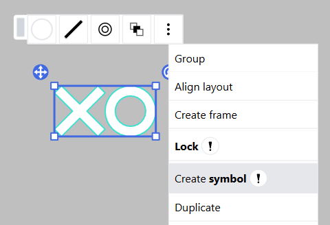 選択したシェイプに対してシンボルシェイプを作成するには、コンテキストメニューから「シンボル作成」を選択します。