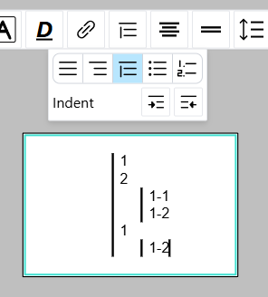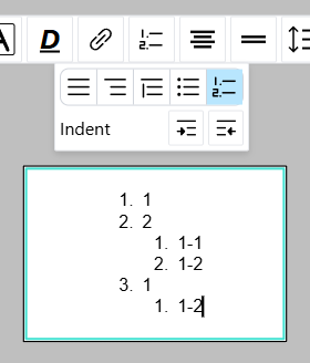 1.、2.などでアクティベーションすると、番号付きリストが開始されます。マーカーはリスト内で自動的に決定されます。